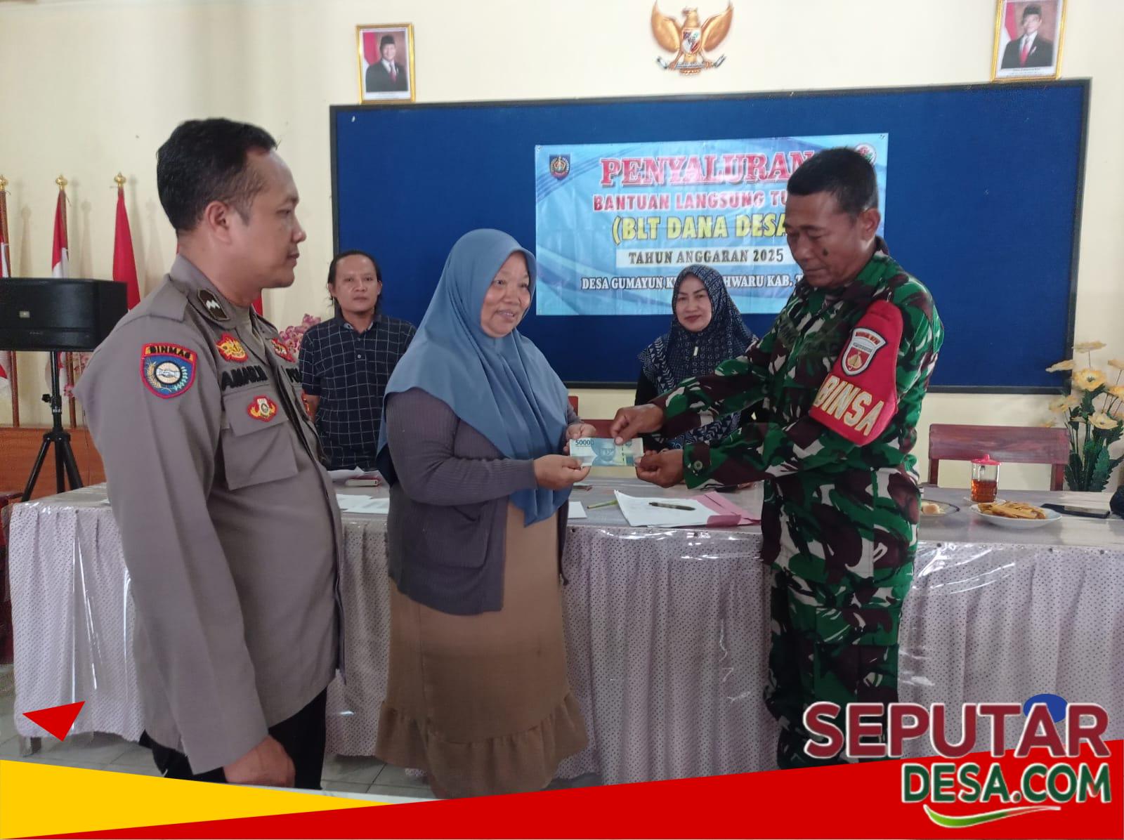 Ia menambahkan, penyaluran BLT Dana Desa di Desa Gumayun dilakukan empat kali dalam satu tahun atau setiap triwulan. Susmaeni juga menyampaikan apresiasi kepada Babinsa, Bhabinkamtibmas, dan PLD yang telah berperan aktif membantu kelancaran kegiatan penyaluran tersebut.
