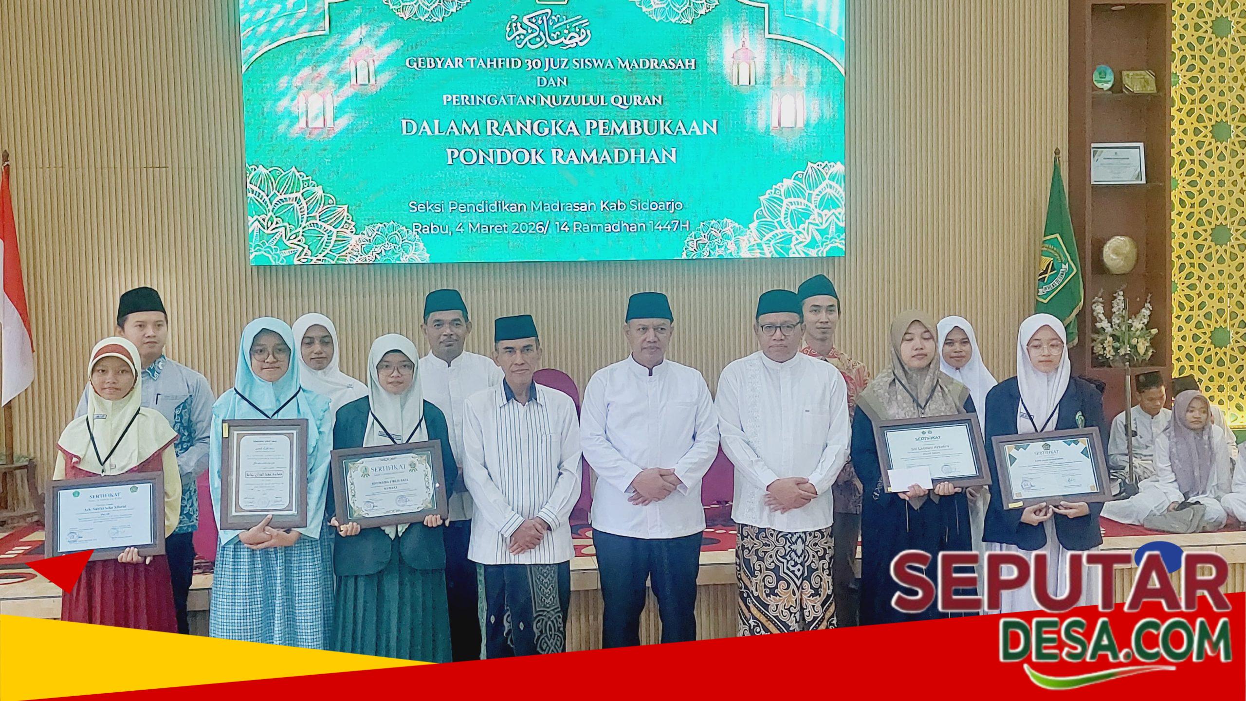 Seputardesa.com, Sidoarjo – Kementerian Agama (Kemenag) Kabupaten Sidoarjo menggelar kegiatan “Gebyar Tahfidz 30 Juz Siswa Siswi Madrasah” yang dirangkaikan dengan peringatan Nuzulul Qur’an serta pembukaan Pondok Ramadhan 1447 Hijriah. Kegiatan tersebut berlangsung di Aula Al Ikhlas Kemenag Sidoarjo, Jawa Timur.