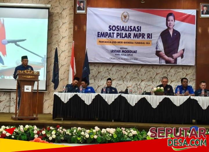 SeputarDesa.com. Grobogan – Anggota DPRD Kabupaten Grobogan dari Partai NasDem, H. Sholikin, menegaskan bahwa penguatan dan pengamalan Empat Pilar MPR RI merupakan tanggung jawab bersama seluruh elemen bangsa, khususnya kader partai politik. Hal tersebut disampaikannya dalam kegiatan Sosialisasi Empat Pilar MPR RI yang diselenggarakan oleh DPD Partai NasDem Kabupaten Grobogan di Hotel Grand Master Purwodadi, Selasa (16/12/2025).