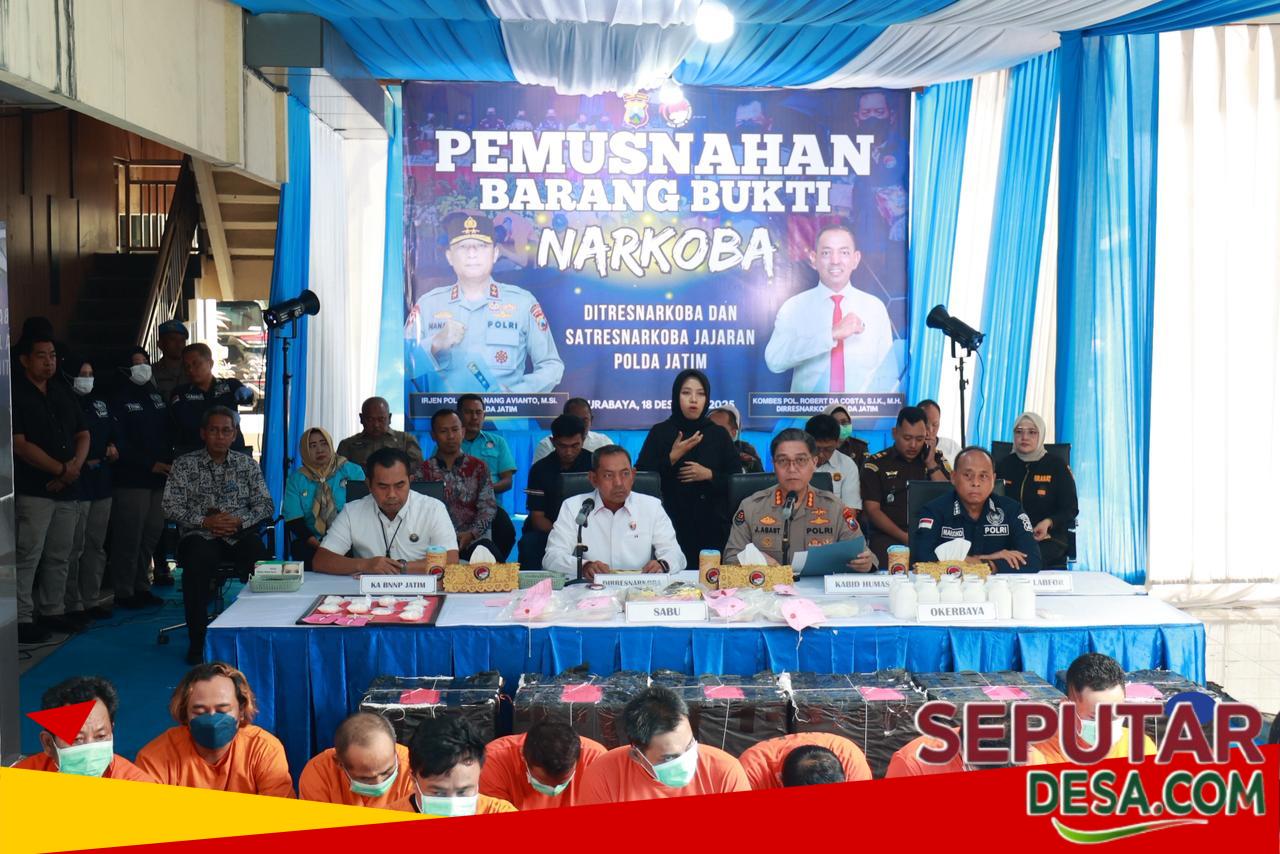 Seputardesa.com, Surabaya – Kepolisian Daerah Jawa Timur terus menunjukkan komitmen kuat dan konsisten dalam memberantas peredaran gelap dan penyalahgunaan narkotika.
