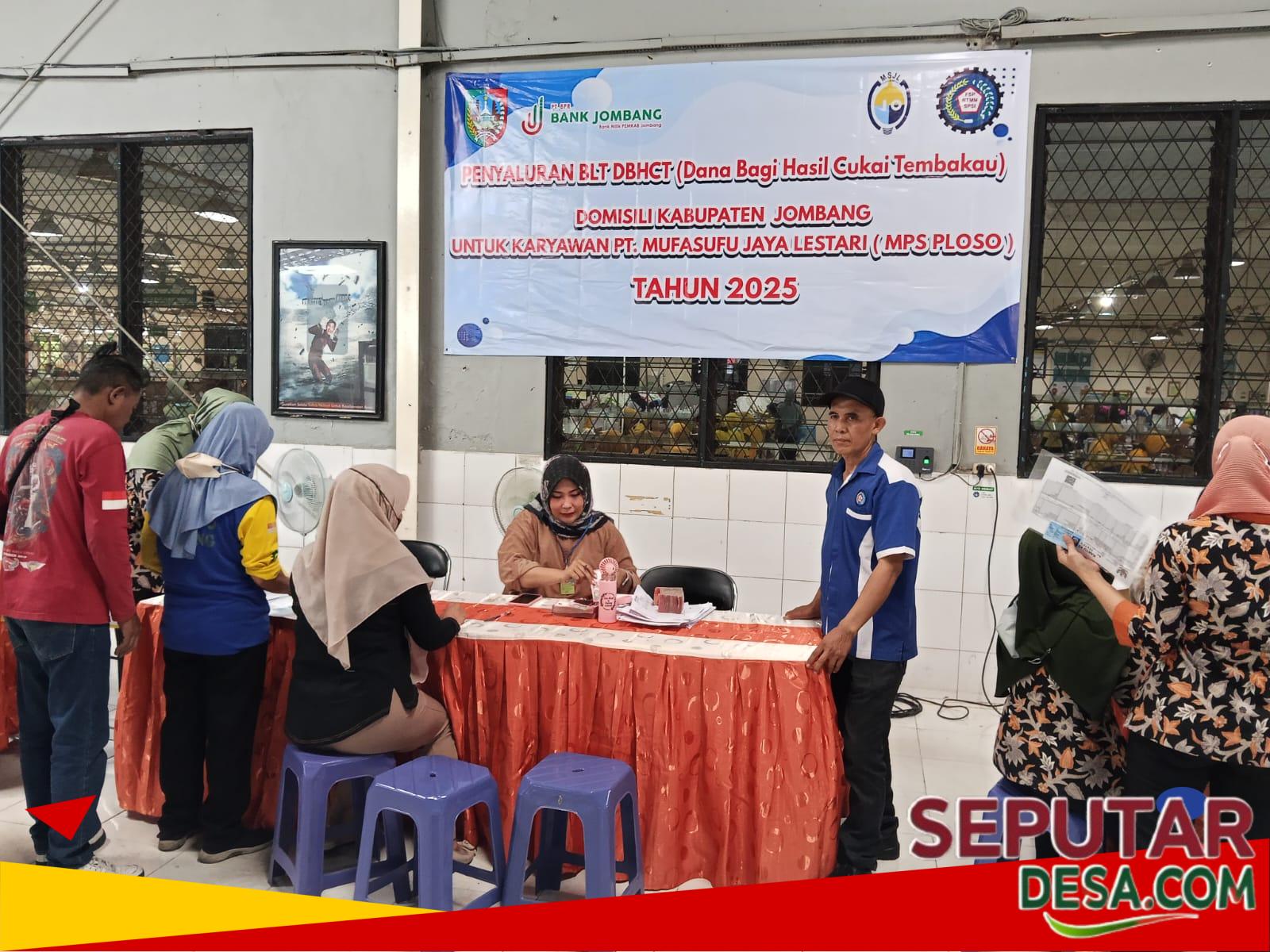 SeputarDesa.com, Jombang, — Pemerintah Kabupaten (Pemkab) Jombang kembali menegaskan komitmennya terhadap peningkatan kesejahteraan buruh industri hasil tembakau. Melalui program Bantuan Langsung Tunai Dana Bagi Hasil Cukai Hasil Tembakau (BLT DBHCHT) tahun 2025, sebanyak 1.151 karyawan PT Mufasufu Jaya Lestari (MPS Ploso) menerima bantuan uang tunai senilai Rp1,2 juta per orang.